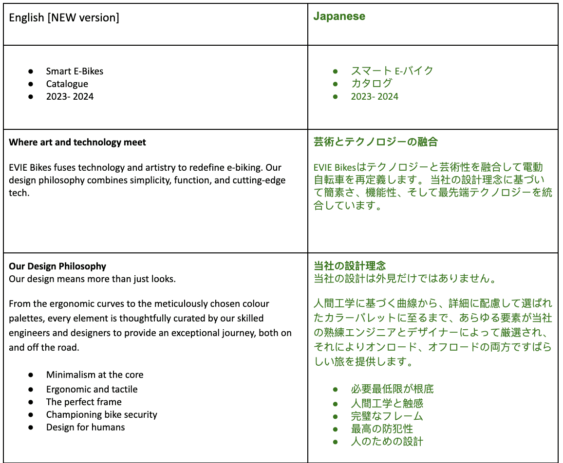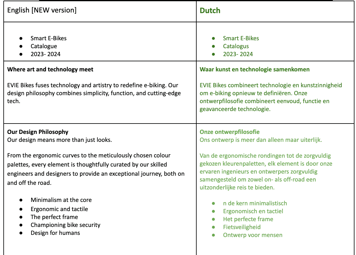 Expanded EVIE Bikes' presence through multilingual product information.